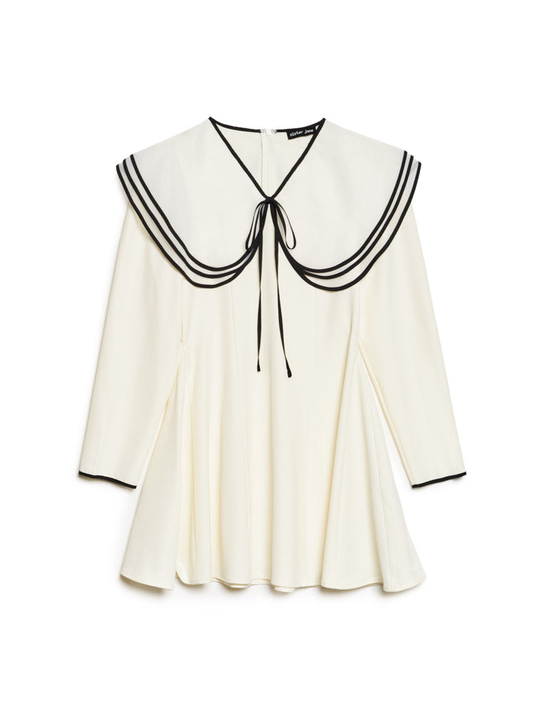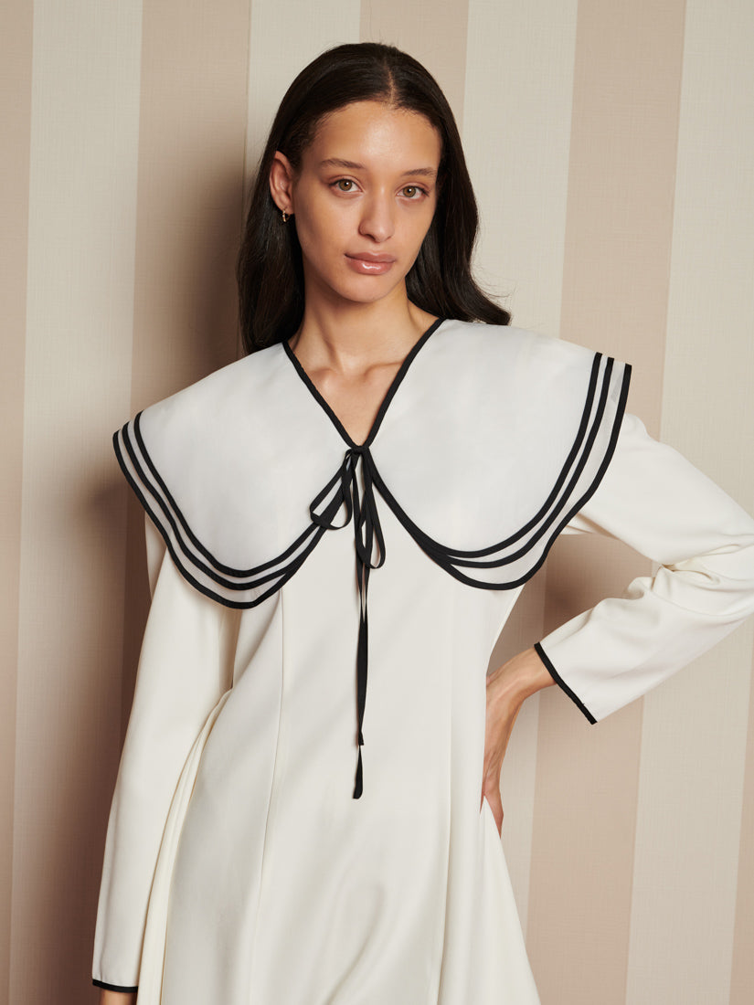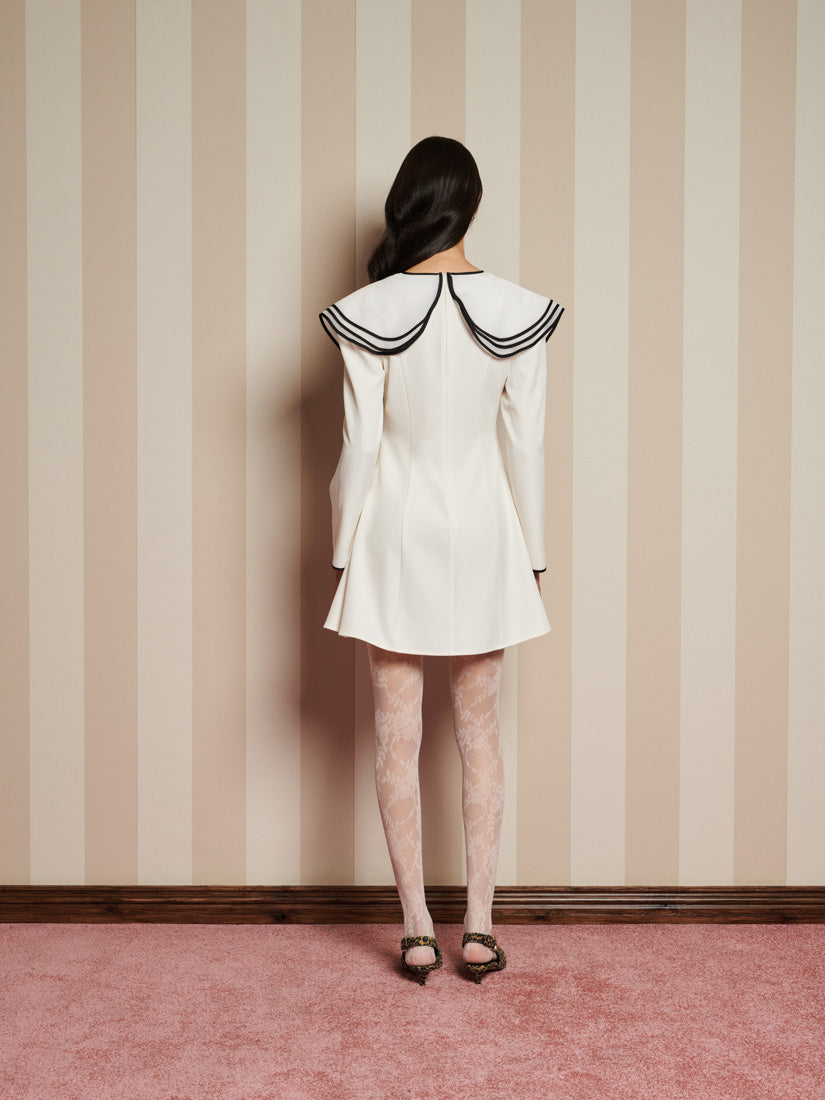 Porcelain Collar ミニワンピースはカーテンのように幾重にも重なった襟が