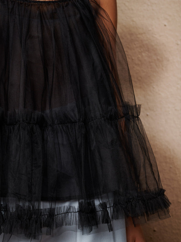 柔らかなチュール生地のキャミソール。フリルディテールが特徴のプルオンスタイル。調節可能なストラップ付きで裏地付き。